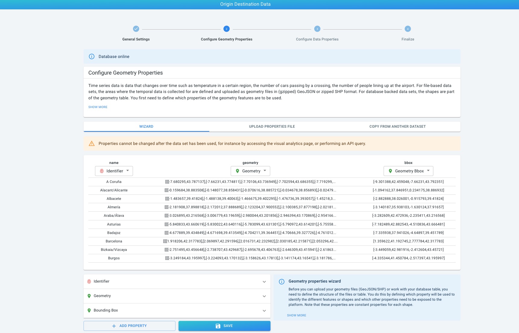 Configuration consists of two parts: the geometry data set and the time series data set.