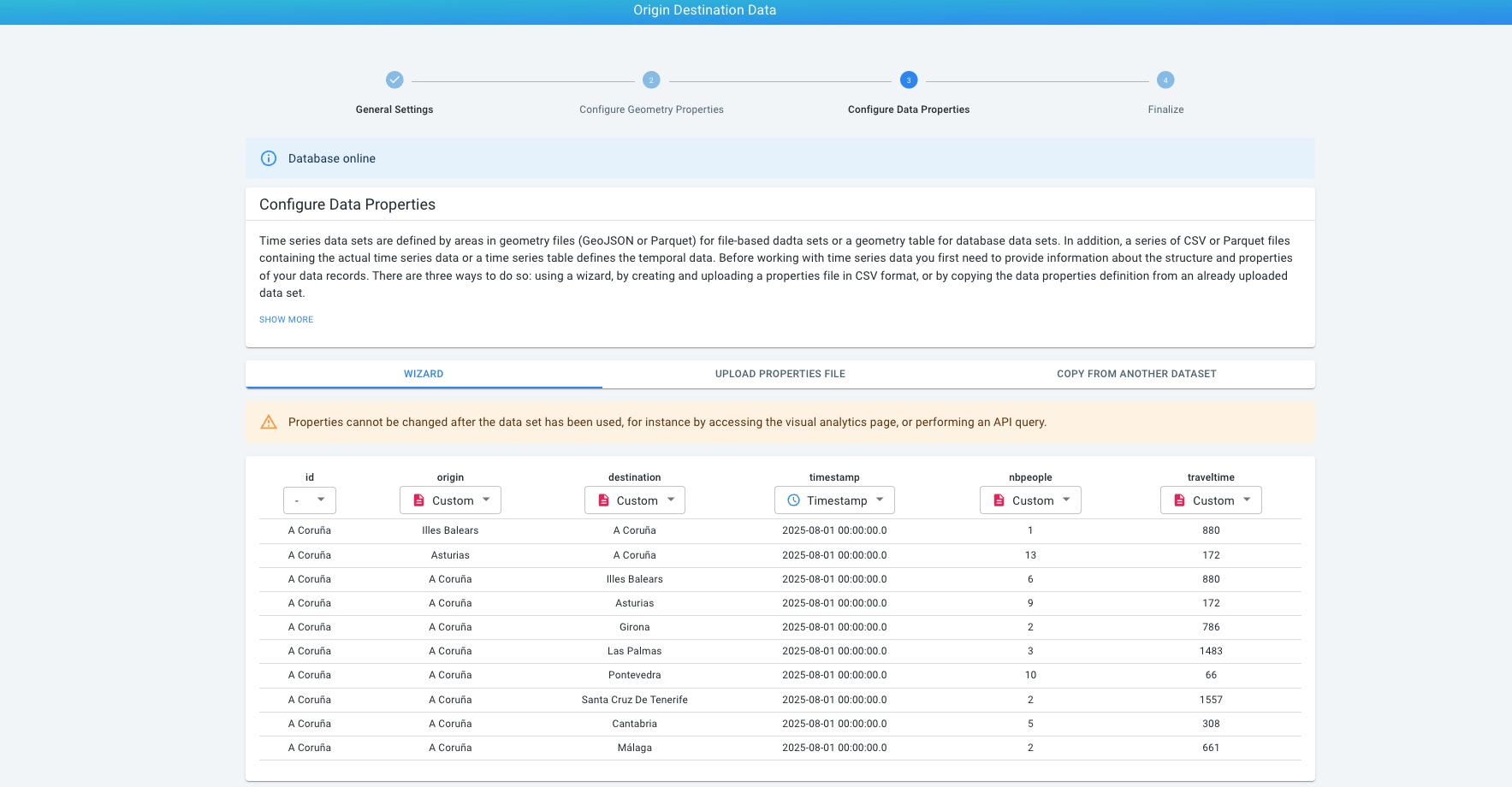 Precomputed origin destination time series are currently supported only for database data sets.