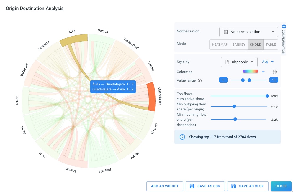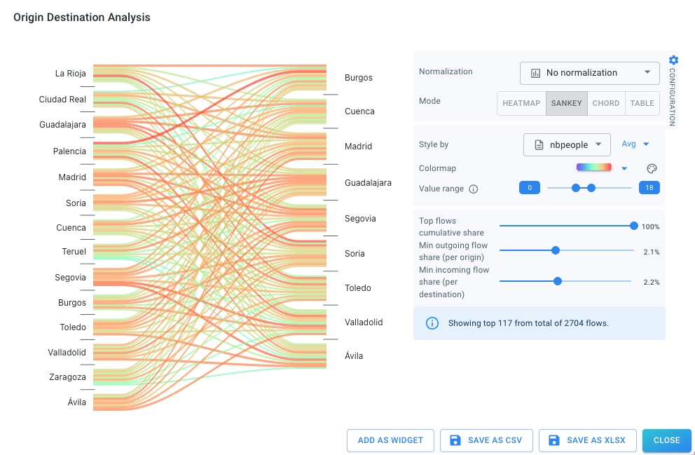 The effect of these filters is consistent across all origin destination visualizations (heatmap, Sankey, chord, and table).