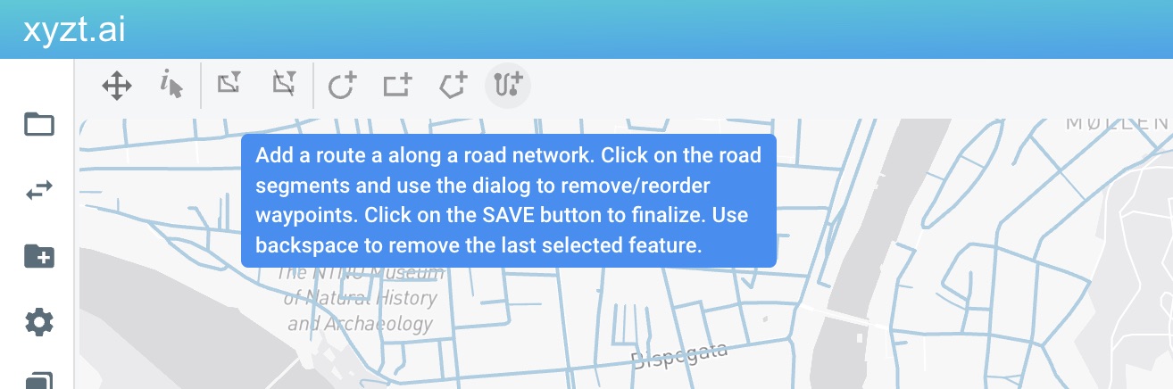 Activate the route creation tool (can be found above the map).
