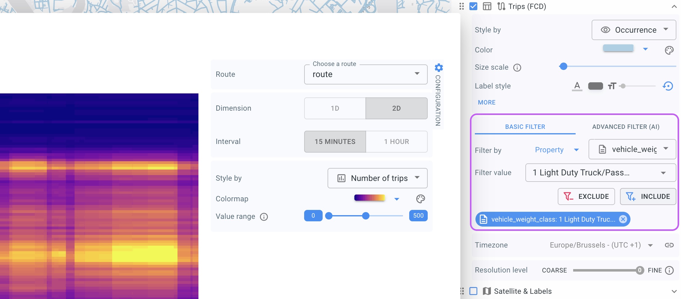 Style by – choose which attribute to analyze (e.g. number of trips, speed)